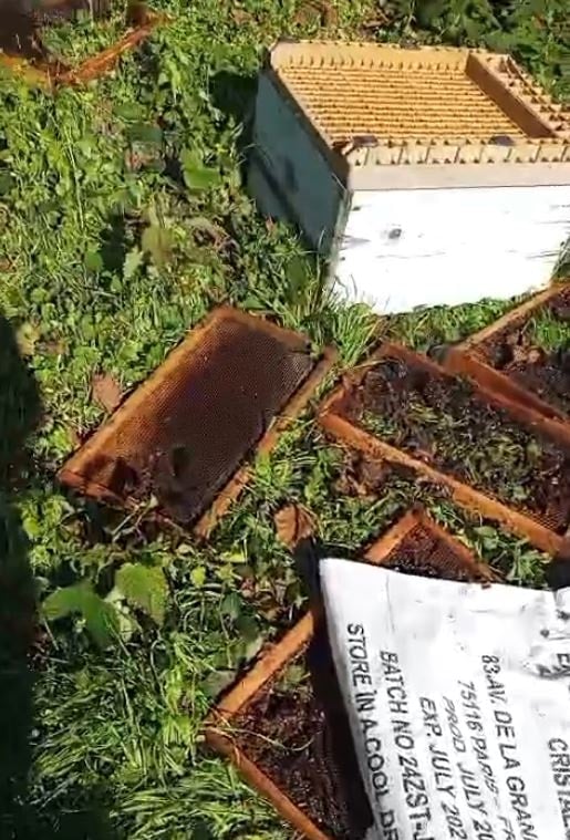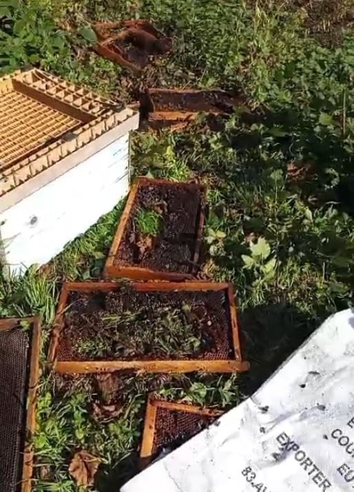 Köy dışında bulunan kovanlarını sabah saatlerinde kontrole giden Uygun, beş kovanı yerde buldu.